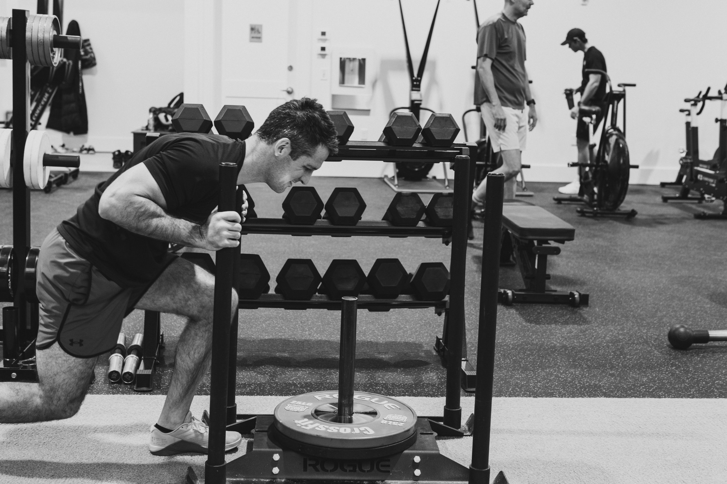 Strength is available to our members in three categories of workouts that include full body traditional strength sessions (pull and push) as well as sled sessions (engage). We use high value, low risk movements to build strength and stamina. We prioritize progressive overload, consistency, sufficient volume, and proper form. Our workouts are repeatable and build confidence.