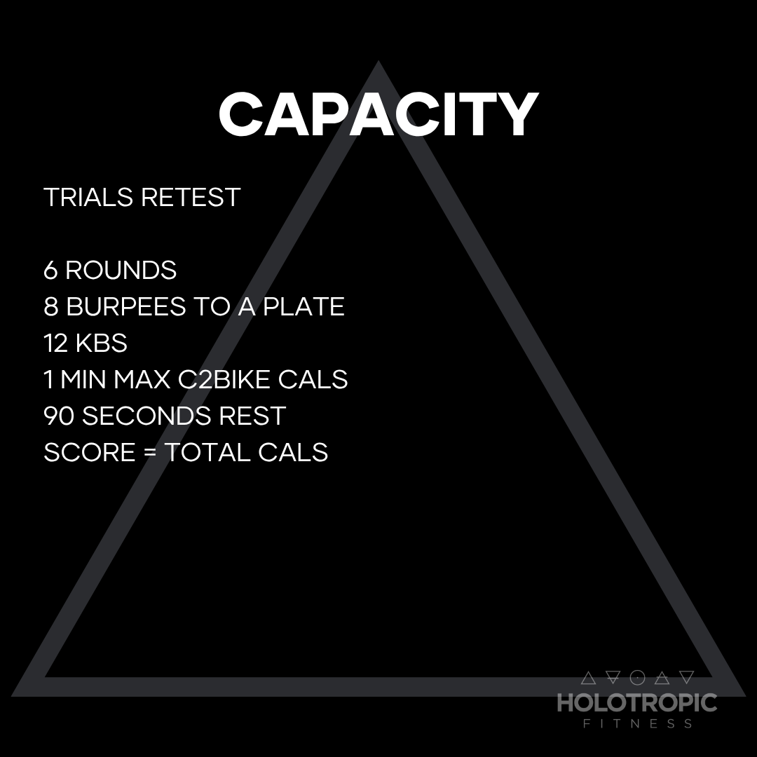 Focus is to move through the KBS and burpees efficiently and quickly before hopping on the bike and pushing as hard as possible for that minute."