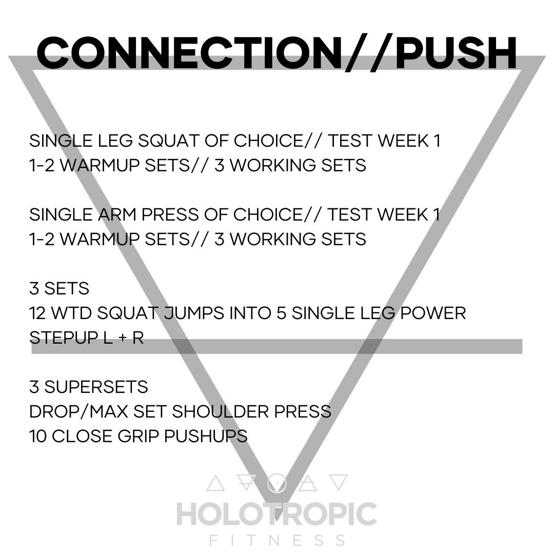 Week 3 of a 6-week progression of unilateral lower and upper body push. Stick with the same 2 exercises you chose last week.