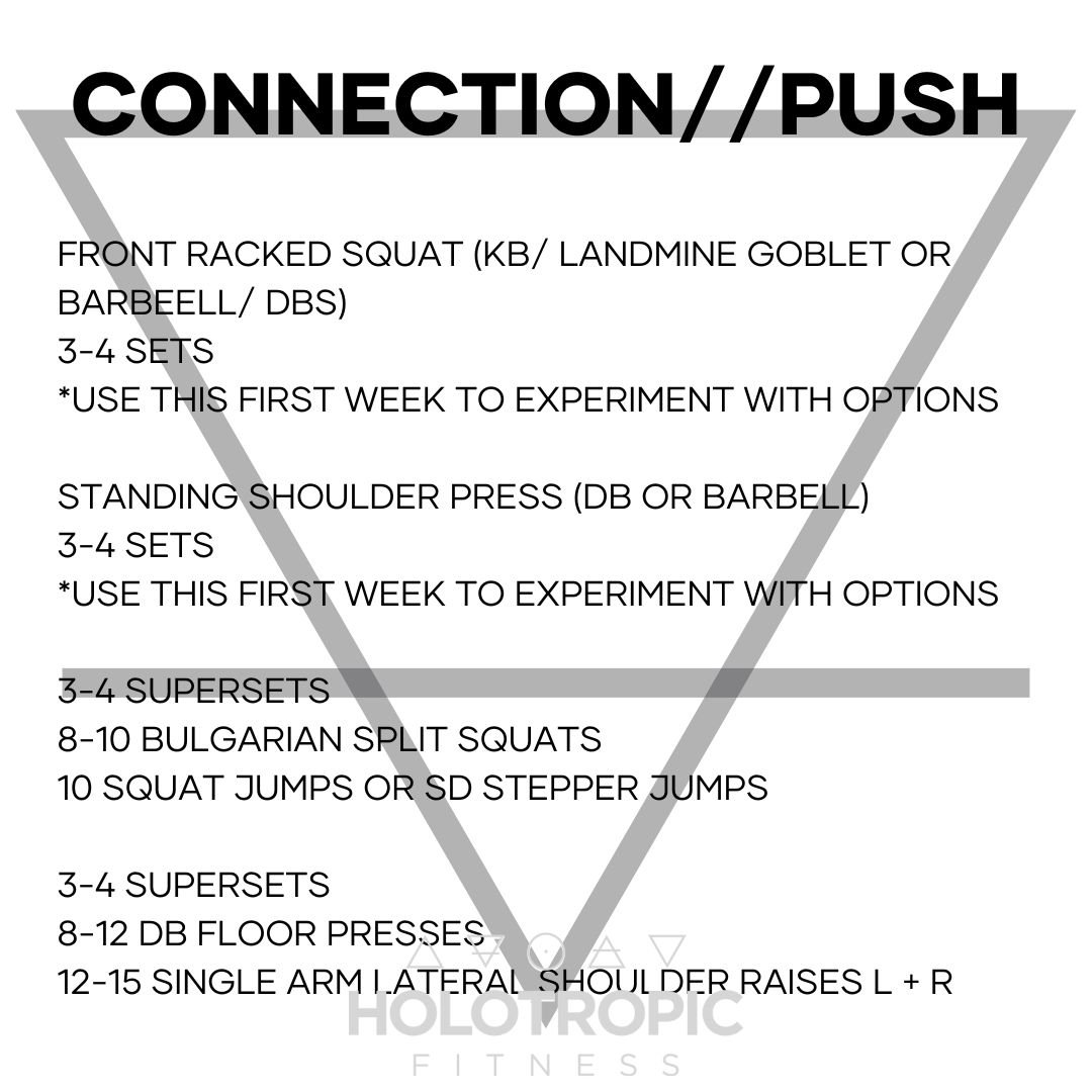 This 6-week session for lower body is focused on the 'front rack' position. There are a variety of options for loading in the 'front' of the body for squats. A goblet squat is a great option, however, know that you will be limited by your uppoer body in load. Using a landmine is great way to get value of goblet position while loading heavier. Alternatives are also to hold a barbell in the front rack resting across the shoulders or DBs)