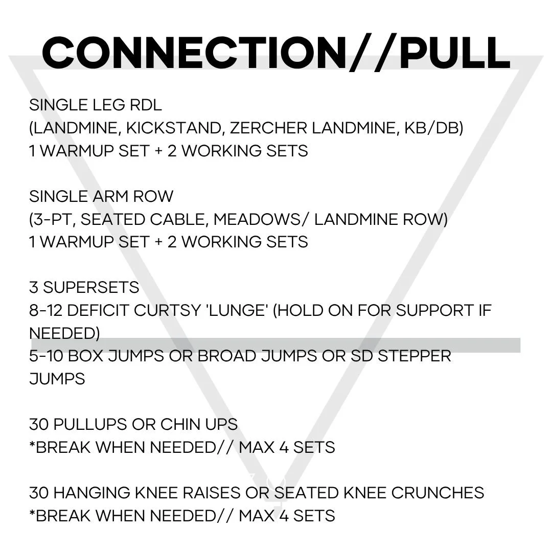 Pullups/ chinups make their way back into accessory this week. Try to get to 30 in as few sets as possilble. Finish with the same scheme for a hanging knee raise.