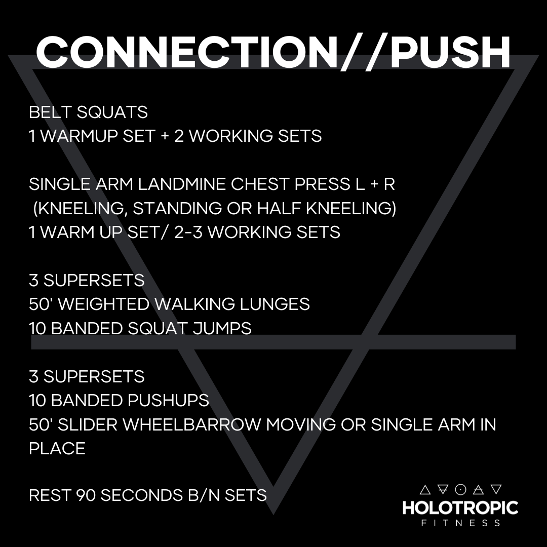 For accessory: Choose a load on the weighted lunges that challenges you to finish the 50 ft. This can be holding weight farmer style at sides, using a trap bar, putting a barbell across your back or even doing front rack position with two KBs. Superset this with banded squats jumps focusing on keeping tension at the legs throughout the position.