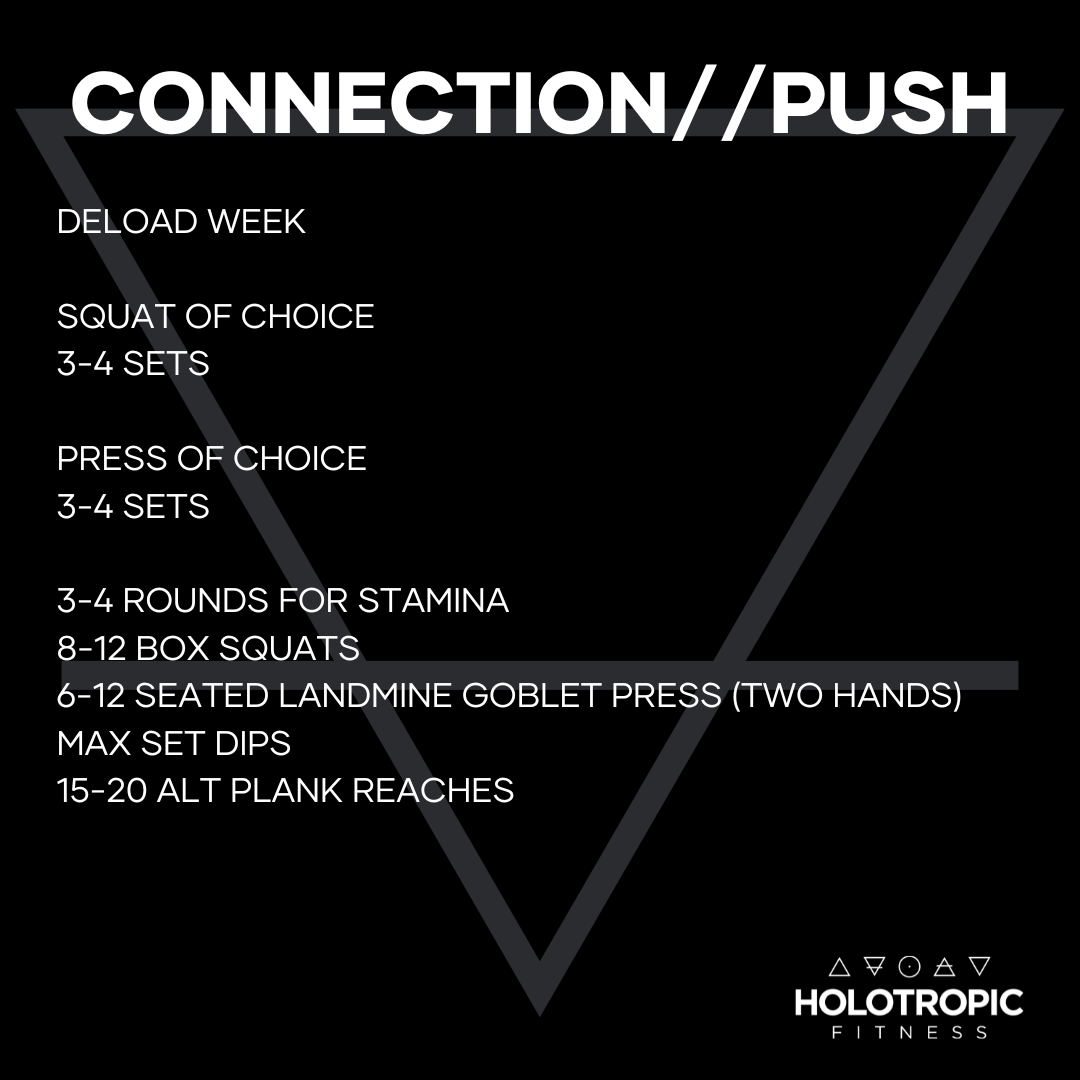 This week we have an 'inbetween' strength segment before kicking off January. Choose movements of your choice today and if desired, make this a 'deload' week where you favor connection over heavy strain.
